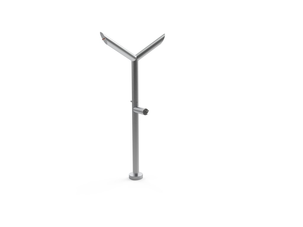 Kombinovaná nerezová mlžící sprcha a pitná fontána v jednom. Jedno napojení pro dvě funkce – úspora při montáži i pořízení. Ideální pro veřejná prostranství, parky, školky i soukromé zahrady.