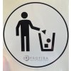Samolepka na odpadkový koš, která vybízí kolemjdoucí, aby odpadky vhazovali do odpadkového koše a ne na zem.