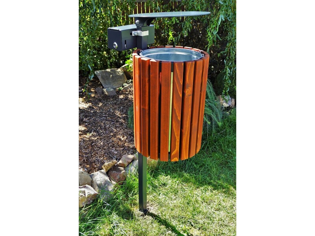 Obložení odpadkového koše je vyrobeno z kvalitního smrkového nebo tvrdého jasanového dřeva. Součástí balení je i pozinkovaná vložka. Tento venkovní odpadkový koš je určen k zabetonování.